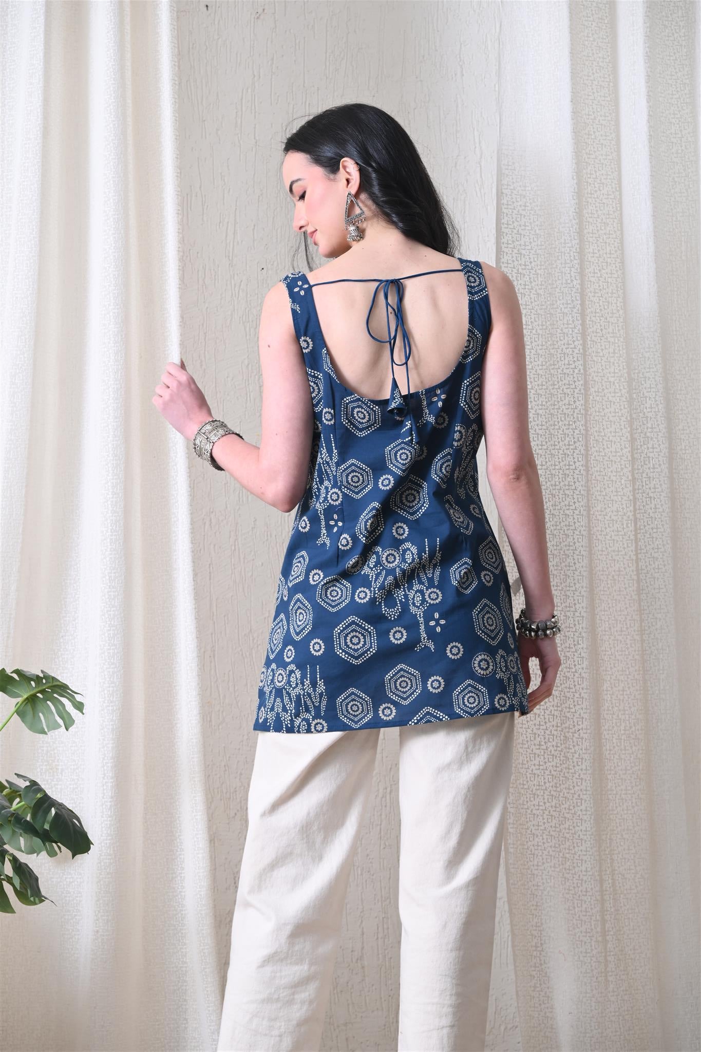 Crafted from soft, breathable fabric, it offers a lightweight and comfortable feel for all-day wear. The flattering A-line silhouette provides a graceful flow, while the sleeveless design keeps it cool and easy to style. The square neckline adds a modern touch, and the tie-up back detailing enhances the look with a feminine charm. Perfect for casual outings, brunch dates, or everyday wear.